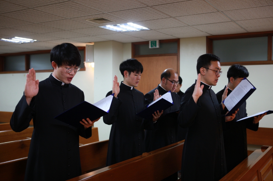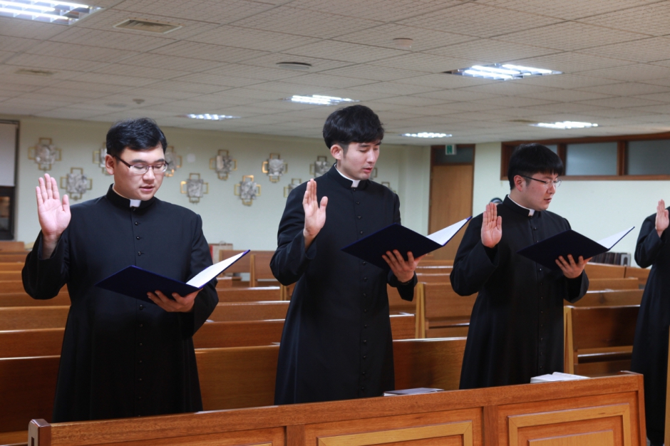 새 부제님들의 충성서약식 - 첫 이정철새부제(다대), 류창훈 새부제(괴정), 최연수새부제(범일),김문경 새부제(대천), 유상우 새부제(양정)