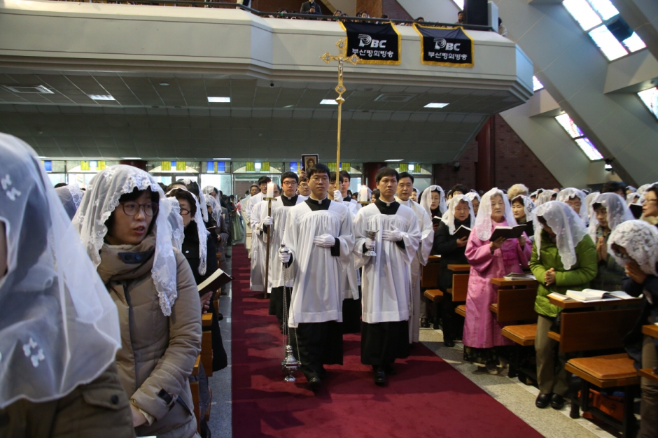 새사제 안수 - 주교님을 비롯한 모든 부산교구 사제들이 새사제에게 안수를 주십니다. 사랑가~득! 성령 가~득!