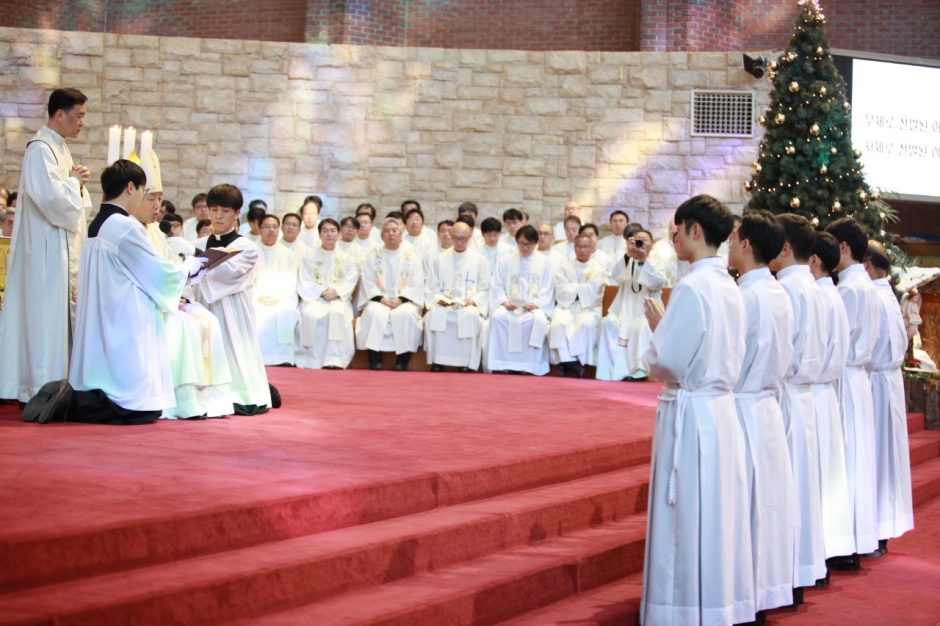 서품후보자 선발 - 신학대학 홍경완 학장 신부님께서 서품자들의 이름을 호명 후 서품허락을 주교님께 청함.
